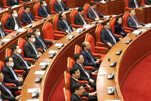 Các đồng chí lãnh đạo Đảng, Nhà nước và các đại biểu dự phiên bế mạc Hội nghị Trung ương 4 khoá XIII