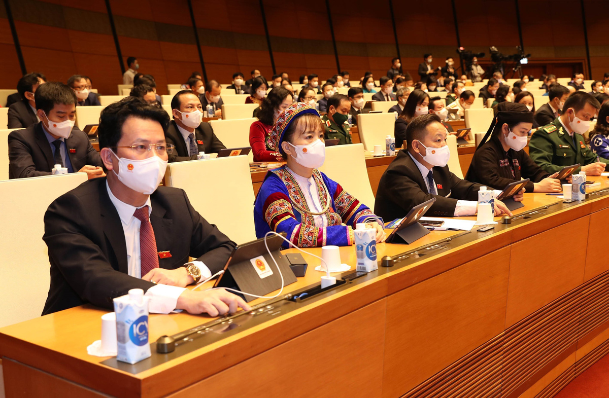 Các đại biểu Quốc hội biểu quyết thông qua luật tại Kỳ họp thứ hai, Quốc hội khoá XV_Ảnh: TTXVN