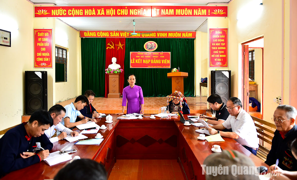 Một buổi sinh hoạt tại Chi bộ thôn Nhật Tân, xã Thiện Kế (Sơn Dương).