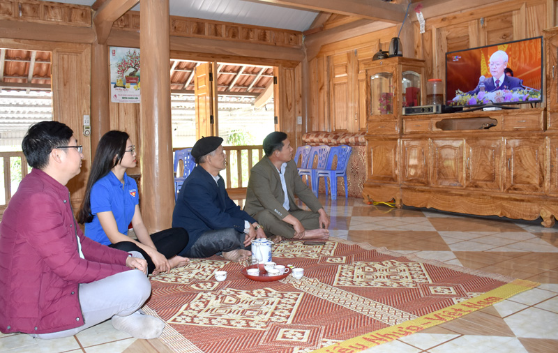 Người dân thôn Bó Củng, xã Kim Bình (Chiêm Hóa) theo dõi trực tiếp