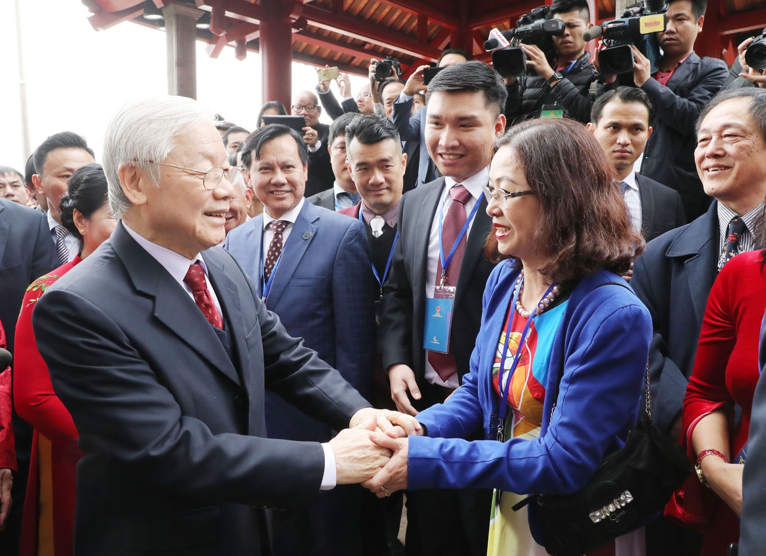 Tổng Bí thư Nguyễn Phú Trọng với kiều bào tại đền Ngọc Sơn, thành phố Hà Nội _Ảnh: TTXVN