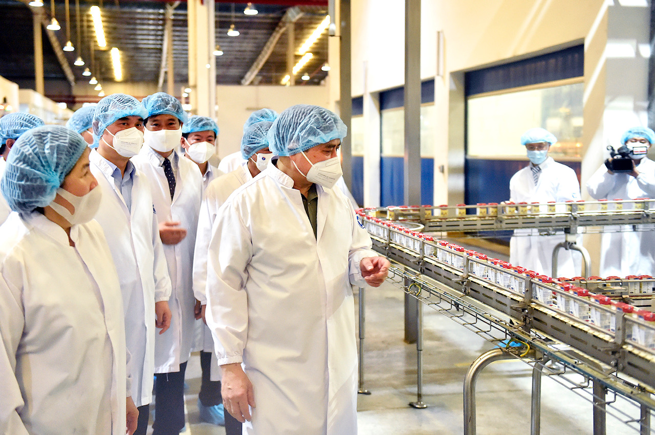 Ủy viên Bộ Chính trị, Thủ tướng Chính phủ Phạm Minh Chính thăm cơ sở sản xuất của Công ty Sữa Vinamilk tại khu công nghiệp Mỹ Phước, huyện Bến Cát, tỉnh Bình Dương_ Ảnh: VGP