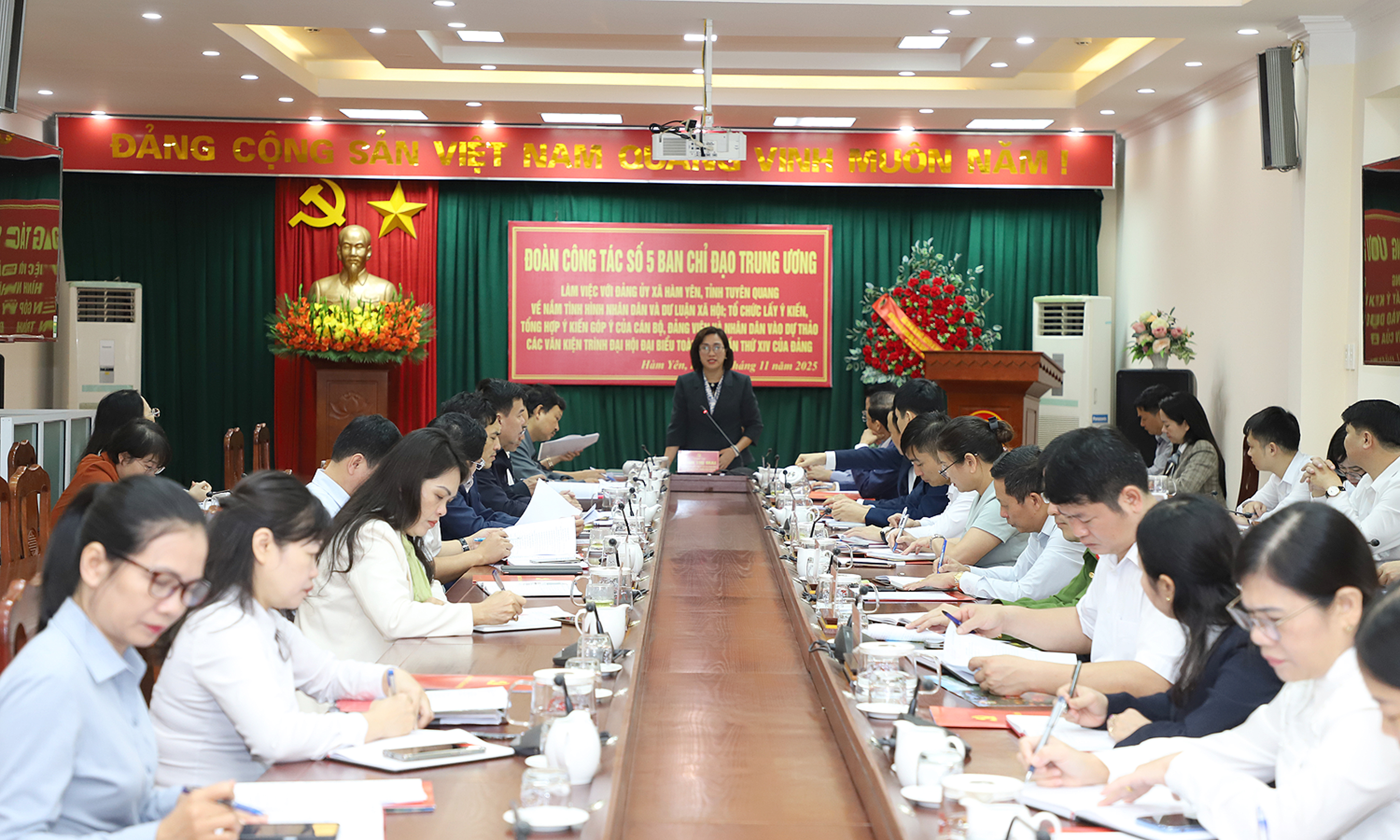 Đoàn công tác số 5, Ban chỉ đạo Trung ương nắm tình hình Nhân dân và dư luận xã hội, ý kiến góp ý của cán bộ, đảng viên và Nhân dân vào dự thảo các văn kiện trình Đại hội XIV của Đảng tại xã Hàm Yên