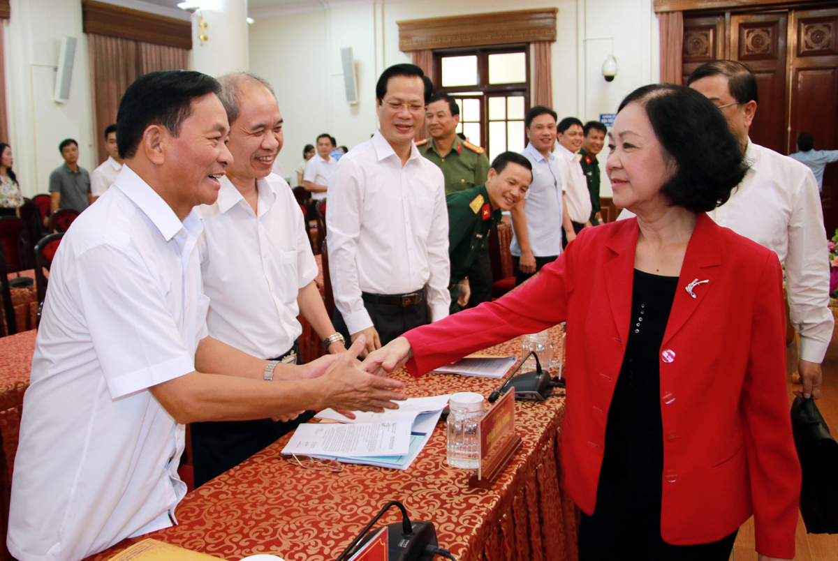 Ủy viên Bộ Chính trị, Bí thư Trung ương Đảng, Trưởng ban Tổ chức Trung ương Trương Thị Mai làm việc với Ban Thường vụ Tỉnh ủy Nam Định_Ảnh: TTXVN