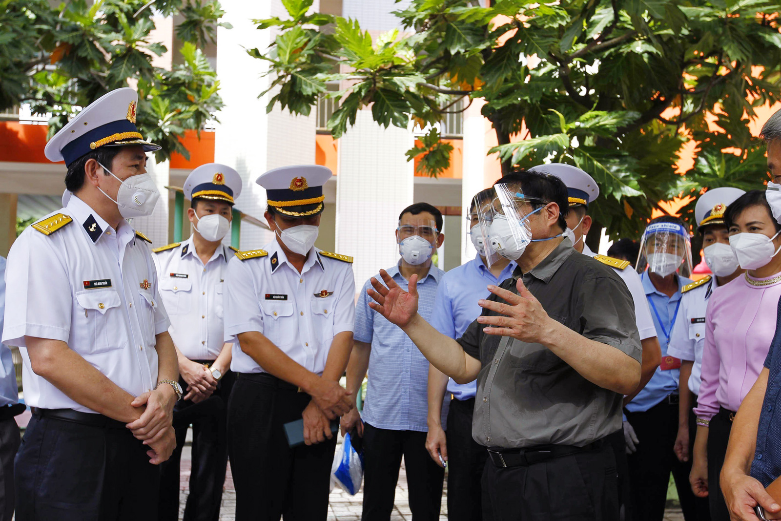 Ủy viên Bộ Chính trị, Thủ tướng Chính phủ Phạm Minh Chính kiểm tra công tác theo dõi, điều trị tại khu cách ly người lao động của Tân cảng Sài Gòn tại Trường mầm non Sơn Ca, thành phố Thủ Đức, Thành phố Hồ Chí Minh_Ảnh: TTXVN