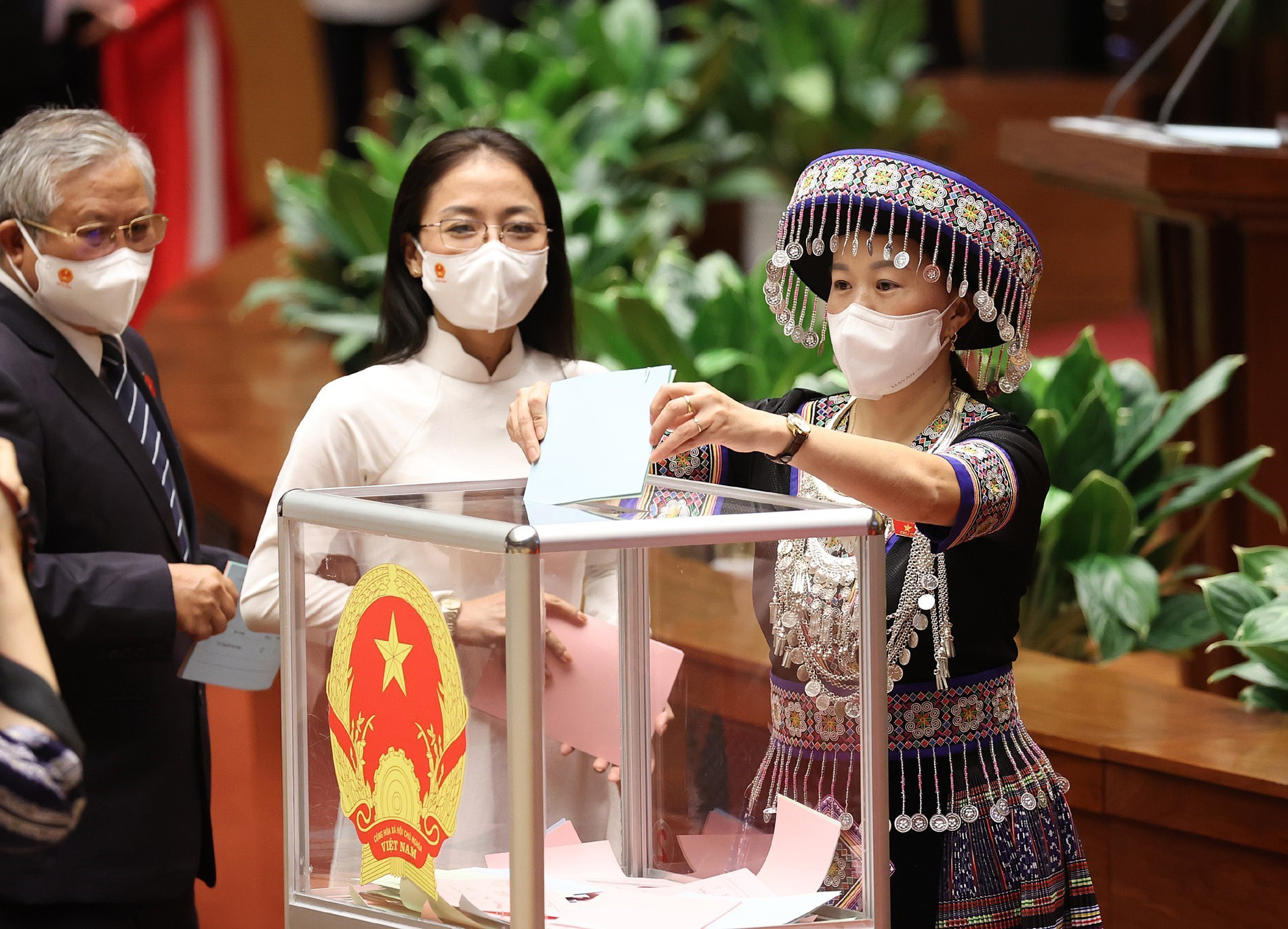 Các đại biểu Quốc hội bỏ phiếu phê chuẩn việc bổ nhiệm nhân sự Thẩm phán Tòa án nhân dân tối cao tại Kỳ họp thứ nhất, Quốc hội khóa XV _Ảnh: TTXVN