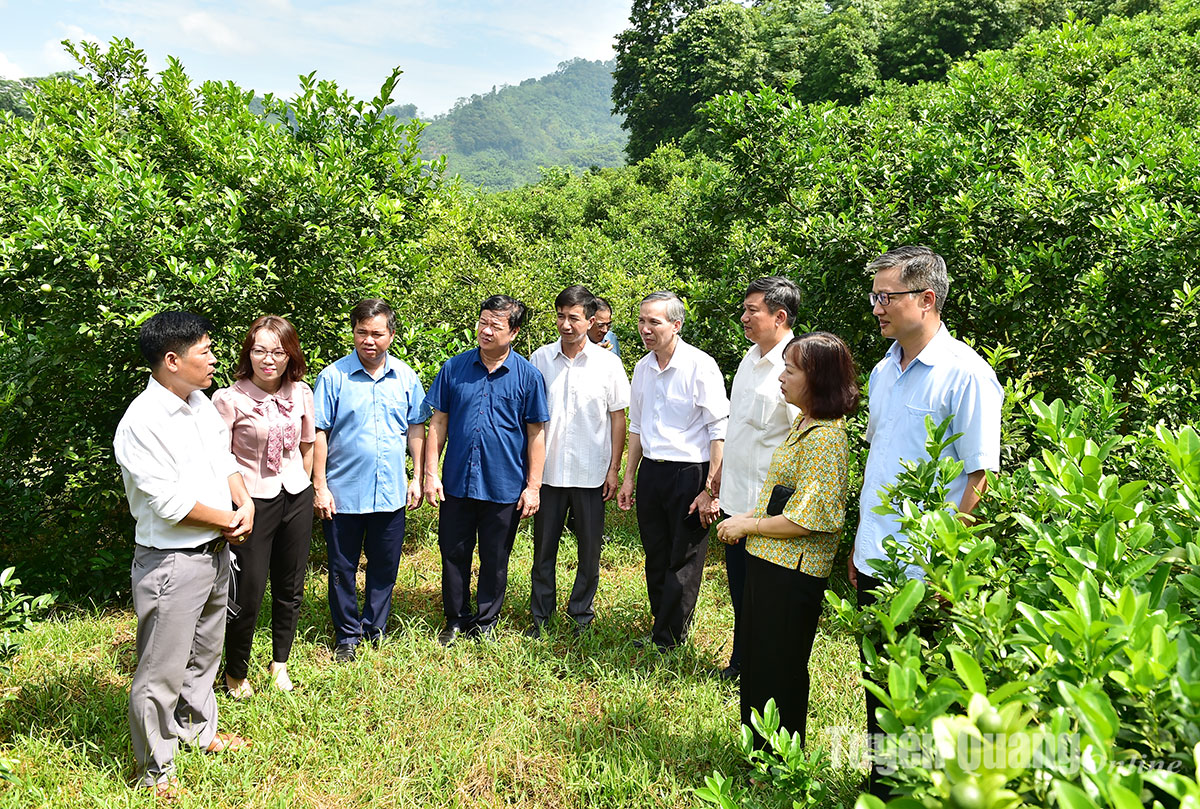 Cán bộ, lãnh đạo Ban Tuyên giáo Tỉnh ủy tham quan mô hình kinh tế tại huyện Chiêm Hóa.