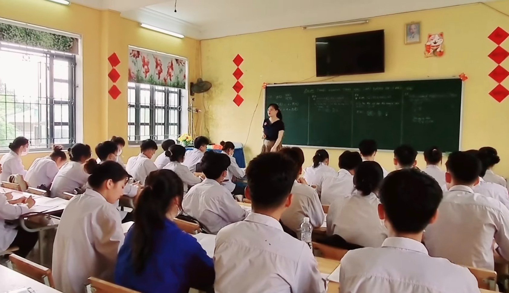 Cô giáo Bùi Thị Anh trong giờ giảng bài cho học sinh