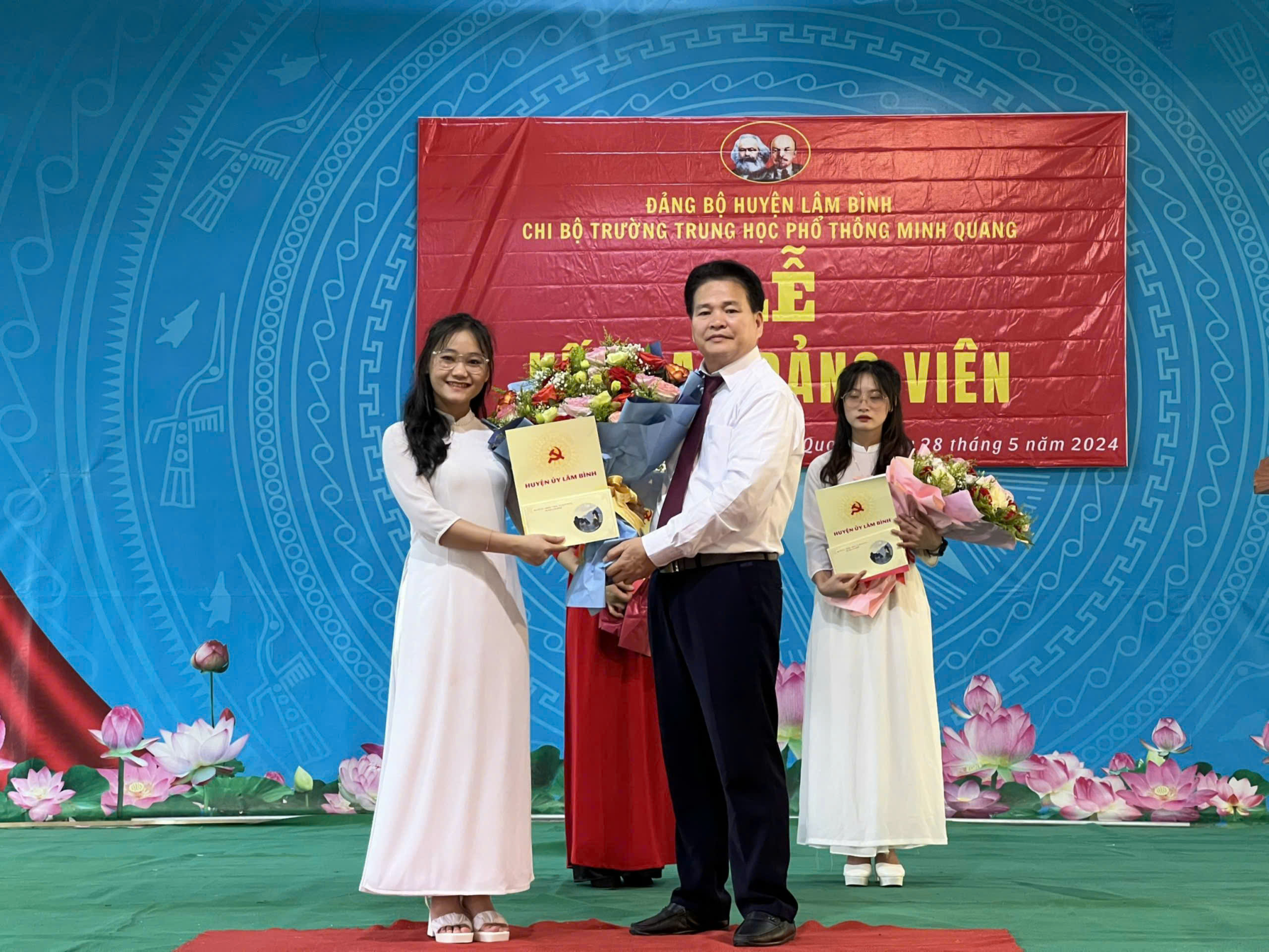 Đồng chí Phó Bí thư Thường trực Huyện ủy Lâm Bình trao quyết định kết nạp Đảng cho học sinh trên địa bàn huyện Lâm Bình