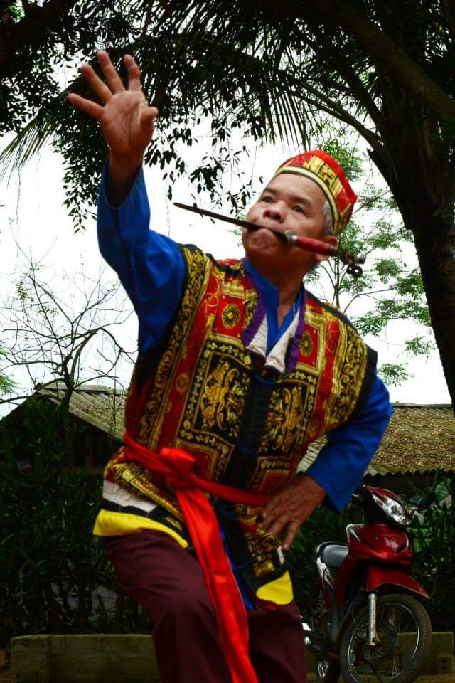 Ông Dừn thực hành nghi lễ múa kiếm