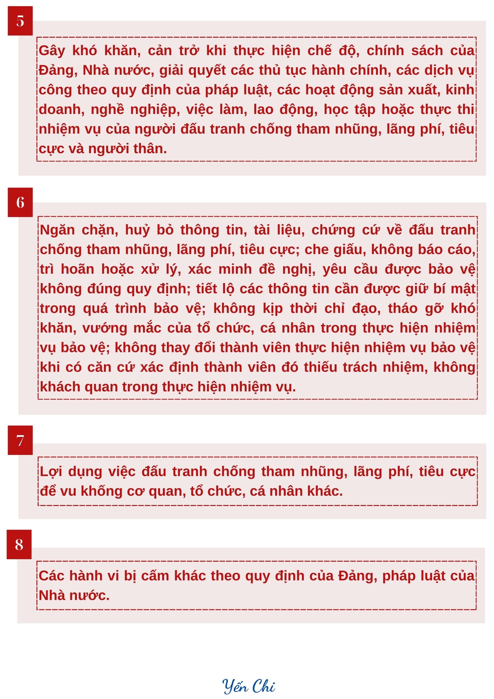 Các hành vi bị nghiêm cấm trong quy định về bảo vệ người đấu tranh chống tham nhũng, lãng phí, tiêu cực