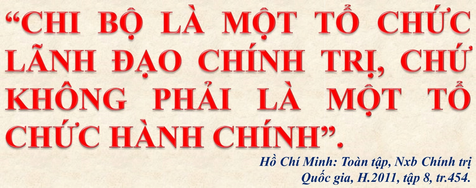 Để chi bộ là một tổ chức lãnh đạo chính trị, chứ không phải là một tổ chức hành chính, Người nêu rõ: Chi bộ phải dùng cách chính trị, giáo dục, đề nghị, giải thích, khai hội bàn bạc với quần chúng... Chứ tuyệt đối không được lạm quyền, mệnh lệnh.