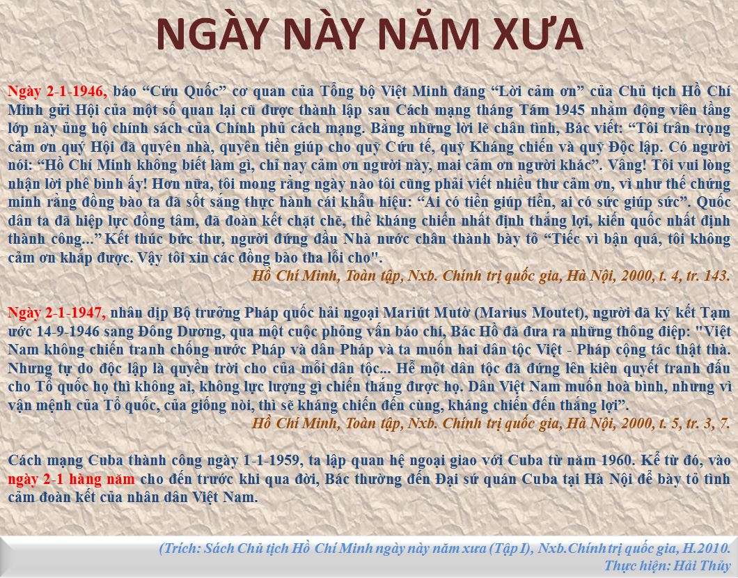 Ngày 2-1-1967, tiếp đại biểu các đơn vị anh hùng và chiến sĩ thi đua chống Mỹ, cứu nước, Chủ tịch Hồ Chí Minh phát biểu ghi nhận, tôn vinh những cá nhân, tập thể đã cống hiến, hy sinh xương máu vì sự nghiệp kháng chiến chống Mỹ, cứu nước; Người động viên từng cá nhân, tập thể hãy cố gắng hơn nữa, thi đua sản xuất, công tác và chiến đấu, lập nhiều thành tích to lớn, góp phần bảo vệ miền Bắc, giải phóng miền Nam, tiến tới thống nhất đất nước.