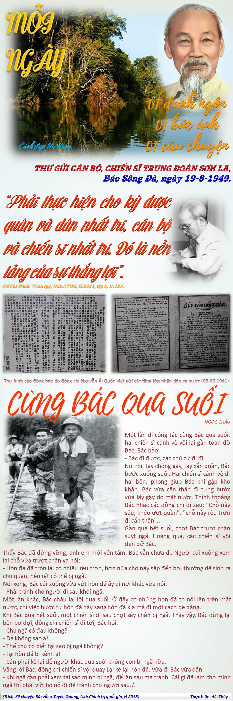 Với lòng yêu nước nồng nhiệt, đồng chí Hồ Chí Minh đã hiến dâng cả cuộc đời cho cuộc chiến đấu vì sự nghiệp của chủ nghĩa xã hội, cho cuộc chiến đấu chống lại chính sách nô dịch các dân tộc của chủ nghĩa đế quốc, vì tự do và độc lập của Tổ quốc Người, vì sự nghiệp hòa bình và hợp tác quốc tế. (Xtêphan Vôitếch, Chủ tịch Quốc hội Rumani).