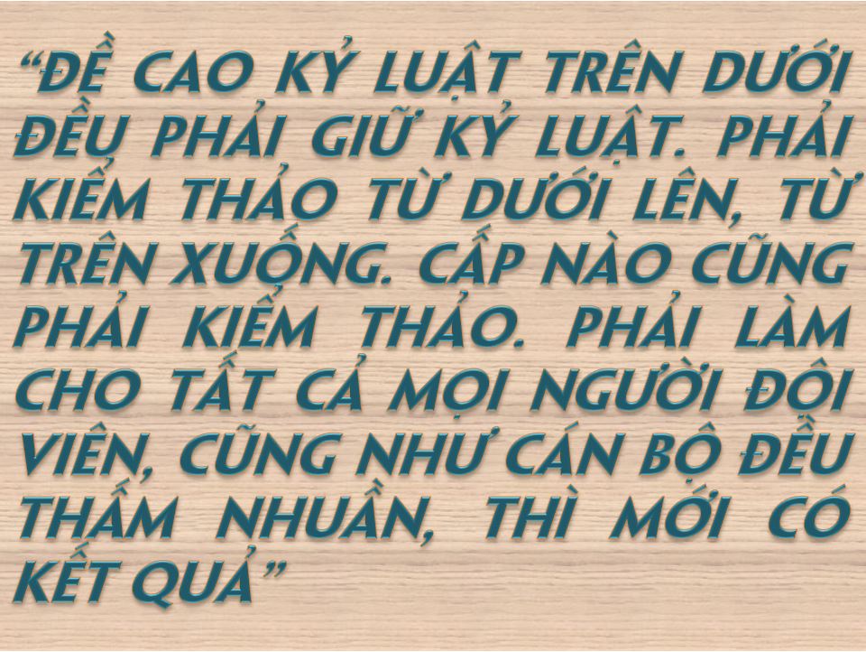 Thấm nhuần lời dạy của Chủ tịch Hồ Chí Minh, trong những năm qua các thế hệ cán bộ, đảng viên luôn ý thức thực hiện và giữ nghiêm kỷ luật, qua đó góp phần xây dựng nên hình ảnh đẹp đẽ, uy tín, giữ vững niềm tin trong nhân dân, từ đó động viên, thuyết phục được nhân dân cùng tham gia vào các hoạt động chung, nhằm thực hiện thành công các chủ trương, chính sách, góp phần bảo đảm thắng lợi các mục tiêu của cách mạng Việt Nam.