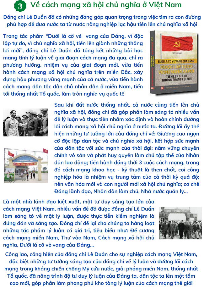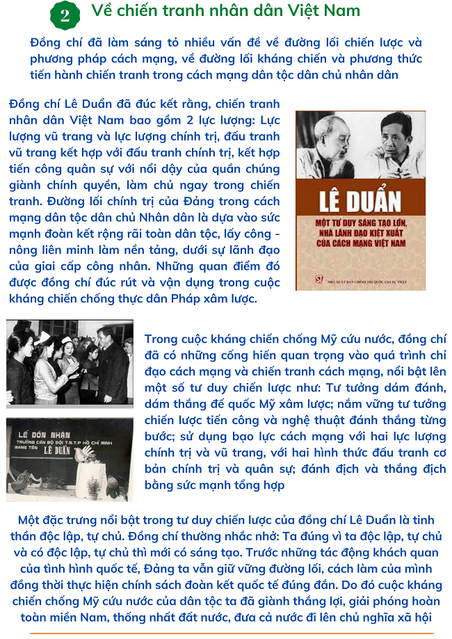 Đồng chí Lê Duẩn (1907 - 1986), có mặt trong đội ngũ những người cộng sản ngay từ khi Đảng mới ra đời, với gần 60 năm hoạt động cách mạng, trong đó có 26 năm trên cương vị Bí thư thứ nhất và Tổng Bí thư của Đảng, đồng chí Lê Duẩn thể hiện rõ là một nhà lãnh đạo kiệt xuất, một nhà lý luận xuất sắc, có tầm cỡ chiến lược của cách mạng Việt Nam. Đồng chí đã để lại cho chúng ta di sản tư tưởng lý luận phong phú trên nhiều lĩnh vực: chính trị, quân sự, kinh tế, văn hóa, ngoại giao, xây dựng Đảng… mà nổi bật là tư duy lý luận về các vấn đề sau: