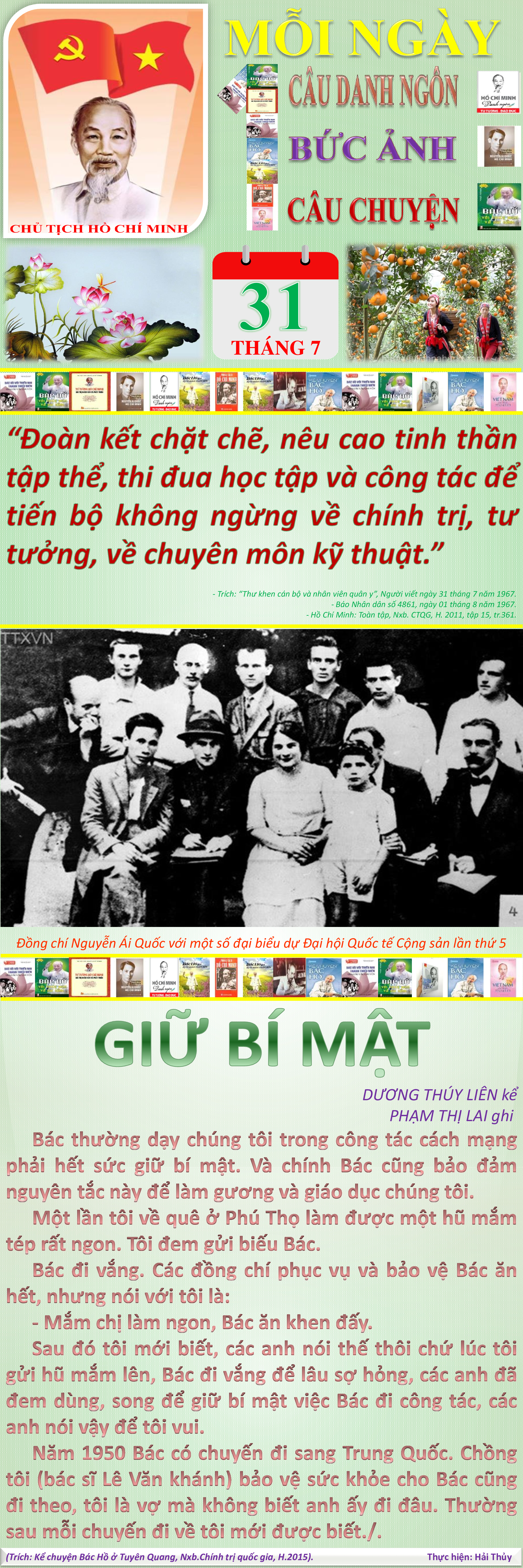 Tất cả những người tiến bộ, tất cả những người có lòng nhân đức sẽ mãi mãi noi theo tấm gương của Người, tấm gương của chủ nghĩa yêu nước ngoan cường, kết hợp với lòng trung thành trước sau như một với chủ nghĩa quốc tế vô sản, tấm gương của một người lãnh đạo cộng sản đã giáo dục nhân dân mình tìm ra con đường độc đáo của mình để tiến tới chủ nghĩa xã hội, tấm gương của con người sáng ngời sự thông minh và khiêm tốn và đối với mỗi người Việt Nam và đối với hàng triệu người khác là "Bác Hồ" rất yêu quý và kính trọng (Tuyên bố của Bộ Chính trị Đảng Cộng sản Pháp, ngày 4-9-1969).