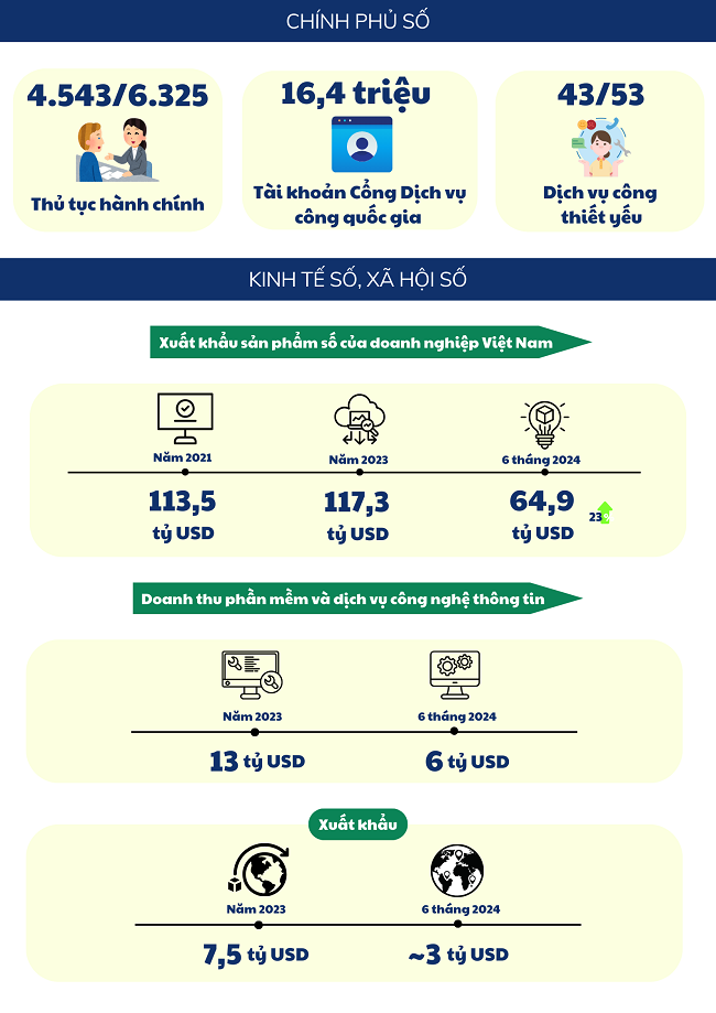 Theo thông cáo báo chí của Văn phòng Chính phủ ngày 19/7/2024, Thủ tướng Phạm Minh Chính, Chủ tịch Ủy ban Quốc gia về chuyển đổi số chủ trì Hội nghị Thường trực Chính phủ về chuyển đổi số, với một số kết quả nổi bật như sau: