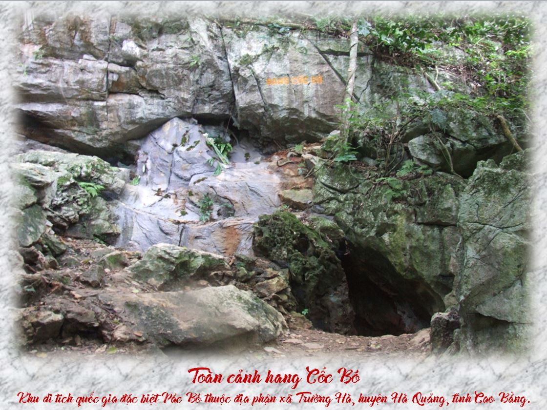 Hang Cốc Bó (tiếng Nùng có nghĩa là “đầu nguồn”) rộng khoảng 80m2, cửa hang chỉ một người đi vừa. Đây là nơi Bác và các đồng chí cán bộ cách mạng ở từ ngày 08/02/1941 đến trung tuần tháng 3 năm 1941. Trong hang hiện còn một bộ bàn ghế mà Bác đã từng ngồi làm việc với các cán bộ cách mạng và dịch các tài liệu quan trọng.