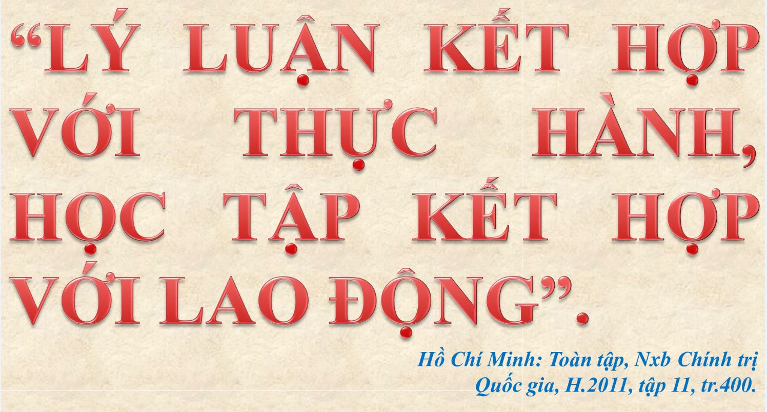 Trong suốt quá trình hoạt động cách mạng, Chủ tịch Hồ Chí Minh luôn khẳng định: "Thống nhất giữa lý luận và thực tiễn là một nguyên tắc căn bản của chủ nghĩa Mác - Lênin. Thực tiễn không có lý luận hướng dẫn thi hành thực tiễn mù quáng. Lý luận mà không có liên hệ với thực tiễn là lý luận suông". Hồ Chí Minh dùng nhiều cách diễn đạt khác nhau để mọi người dễ hiểu: "Lý luận đi đôi với thực tiễn", "Lý luận kết hợp với thực hành", "Lý luận và thực hành phải luôn luôn đi đôi với nhau”, "Lý luận phải liên hệ với thực tế”.