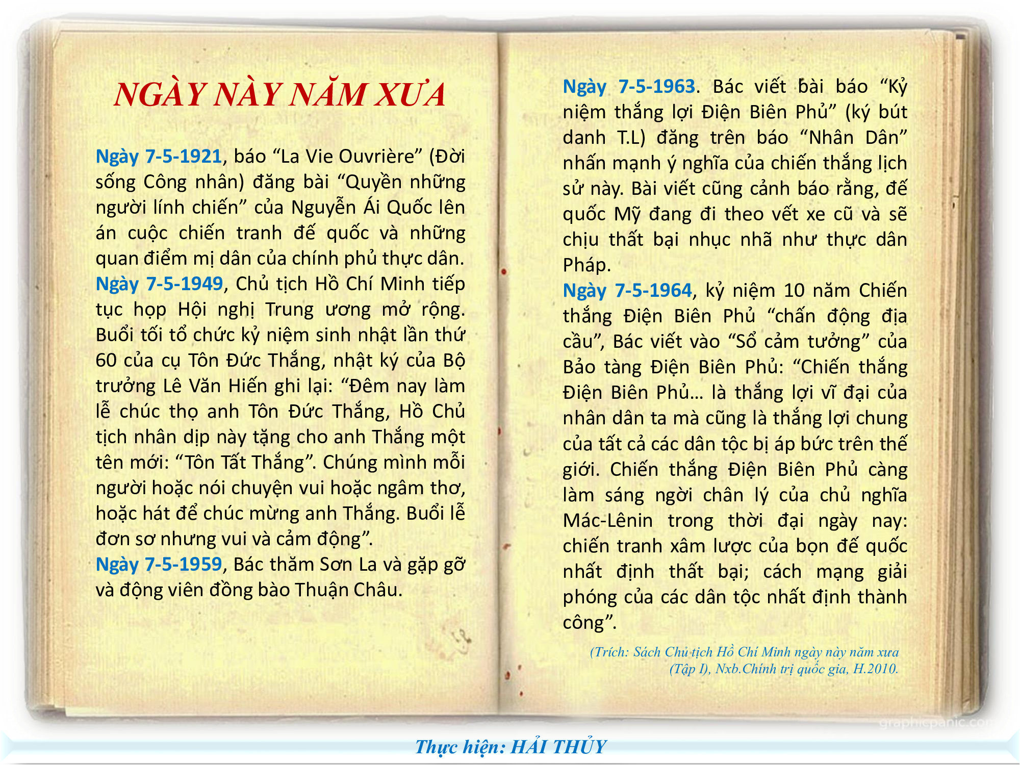 Cuối cùng, Người yêu cầu: Thời đại chúng ta bây giờ là thời đại vệ tinh nhân tạo, nghĩa là thời đại của khoa học phát triển rất mạnh, thời đại xã hội chủ nghĩa, thời đại anh hùng; mỗi người lao động tốt đều có thể trở nên anh hùng (không phải là anh hùng cá nhân). Vậy mong các cháu cũng làm người thanh niên anh hùng trong thời đại anh hùng.