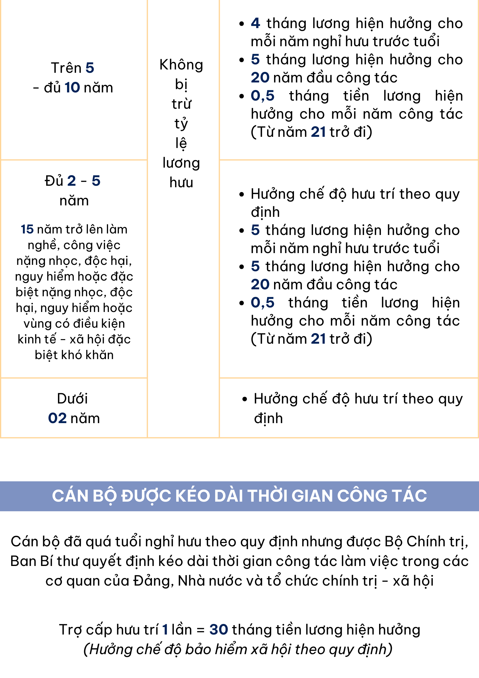 Một số chính sách đối với người nghỉ hưu trước tuổi và cán bộ được kéo dài thời gian công tác