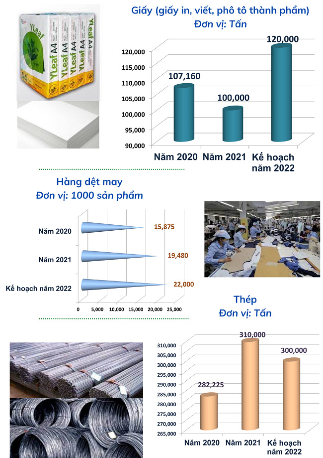 Năm 2021 trong phát triển sản xuất một số sản phẩm công nghiệp chủ yếu của tỉnh đã đạt được kết quả và kế hoạch thực hiện năm 2022 cụ thể: