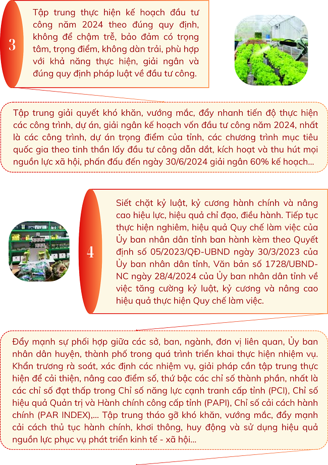 Thực hiện Chỉ thị số 12/CT-TTg ngày 21/4/2024 của Thủ tướng Chính phủ về các nhiệm vụ, giải pháp trọng tâm thúc đẩy phát triển kinh tế - xã hội, ngày 09/5/2024 Ủy ban nhân dân tỉnh ban hành Văn bản số 1931/UBND-THVX với một số nhiệm vụ và giải pháp trọng tâm như sau: