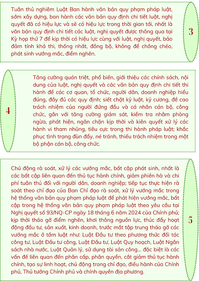 Ngày 13/8/2024 Văn phòng Chính phủ ban hành Thông báo số 378/TB-VPCP về kết luận của Thủ tướng Chính phủ tại Hội nghị quán triệt, triển khai thi hành một số luật, nghị quyết của Quốc hội khóa XV, với một số nhiệm vụ trọng tâm như sau: