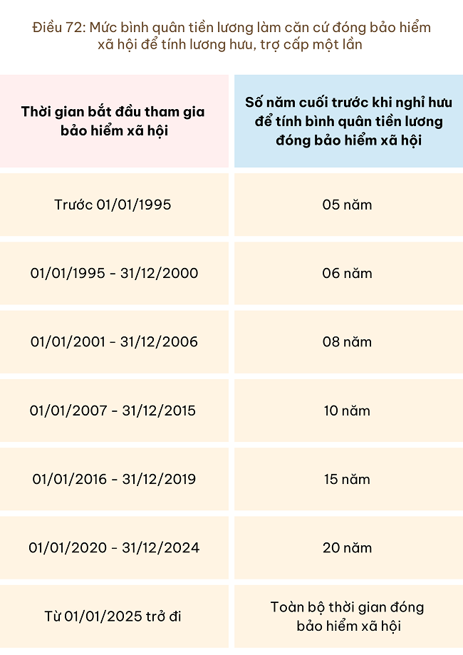 Ngày 29/6/2024, Quốc hội ban hành Luật bảo hiểm xã hội số 41/2024/QH15, với mức lương hưu hằng tháng và mức bình quân tiền lương làm căn cứ đóng bảo hiểm xã hội để tính lương hưu, trợ cấp một lần đối với bảo hiểm xã hội bắt buộc quy định tại điều 66, 72 như sau: