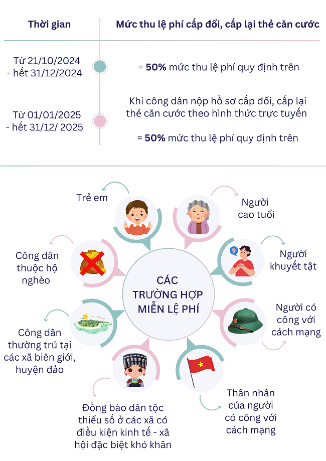 Mức thu và các trường hợp miễn lệ phí khi cấp đổi, cấp lại thẻ căn cước