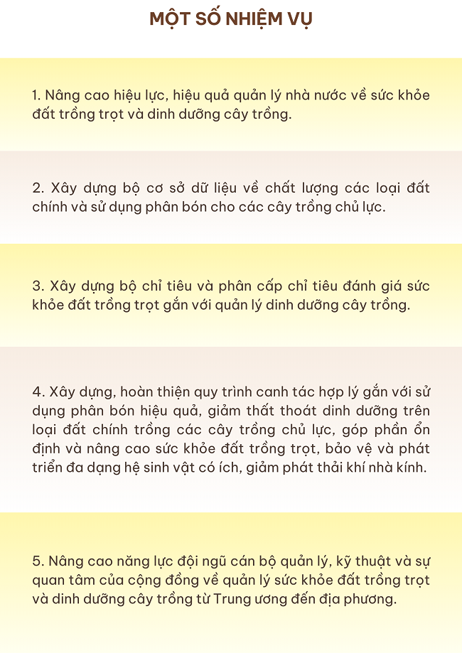 Mục tiêu, một số nhiệm vụ thực hiện đề án "Nâng cao sức khỏe đất và quản lý dinh dưỡng cây trồng đến năm 2030, tầm nhìn đến năm 2050"