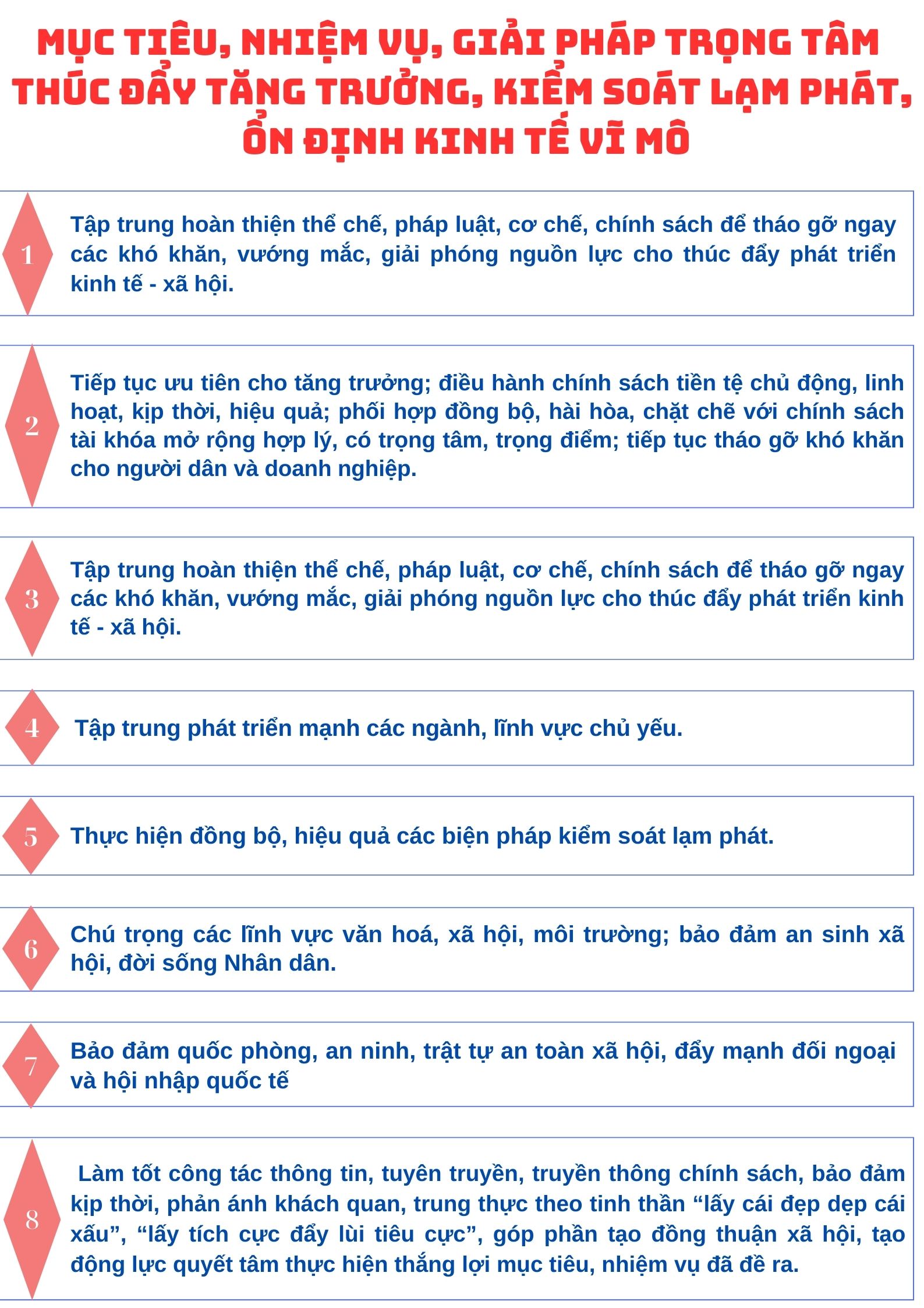 Mục tiêu, nhiệm vụ, giải pháp trọng tâm thúc đẩy tăng trưởng, kiểm soát lạm, ổn định kinh tế vĩ mô