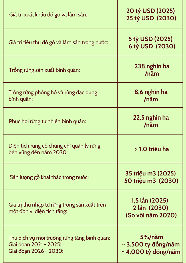 Ngày 24/8/2024 Thủ tướng Chính phủ ban hành Quyết định số 895/QĐ-TTg về Phê duyệt Quy hoạch lâm nghiệp quốc gia thời kỳ 2021 – 2030, tầm nhìn đến năm 2050, với mục tiêu tổng quát, cụ thể và tầm nhìn đến năm 2050 như sau: