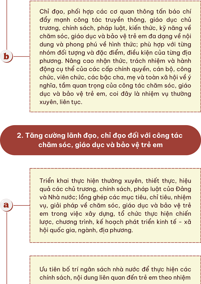 Nhiệm vụ, giải pháp thực hiện Kế hoạch triển khai thực hiện Chỉ thị số 28 CT/TW ngày 25/12/2023 của Bộ Chính trị về tăng cường công tác chăm sóc, giáo dục và bảo vệ trẻ em đáp ứng yêu cầu phát triển đất nước phồn vinh, hạnh phúc