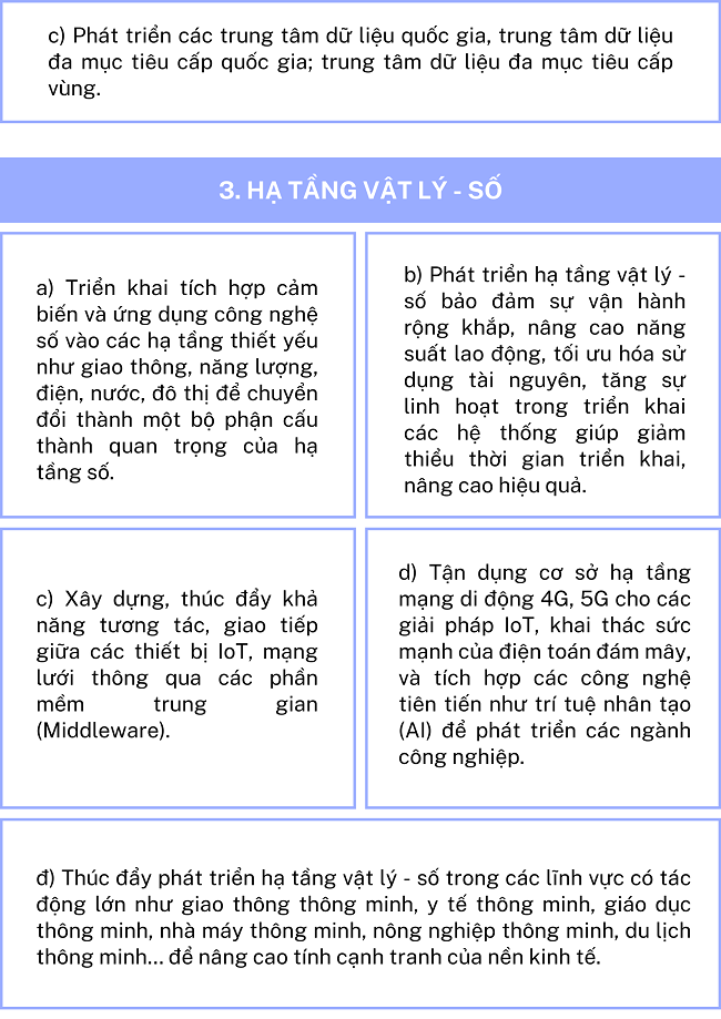 Ngày 09/10/2024, Thủ tướng Chính phủ ban hành Quyết định số 1132/QĐ-TTg về phê duyệt Chiến lược hạ tầng số đến năm 2025 và định hướng đến năm 2030 với nhiệm vụ trọng tâm như sau: