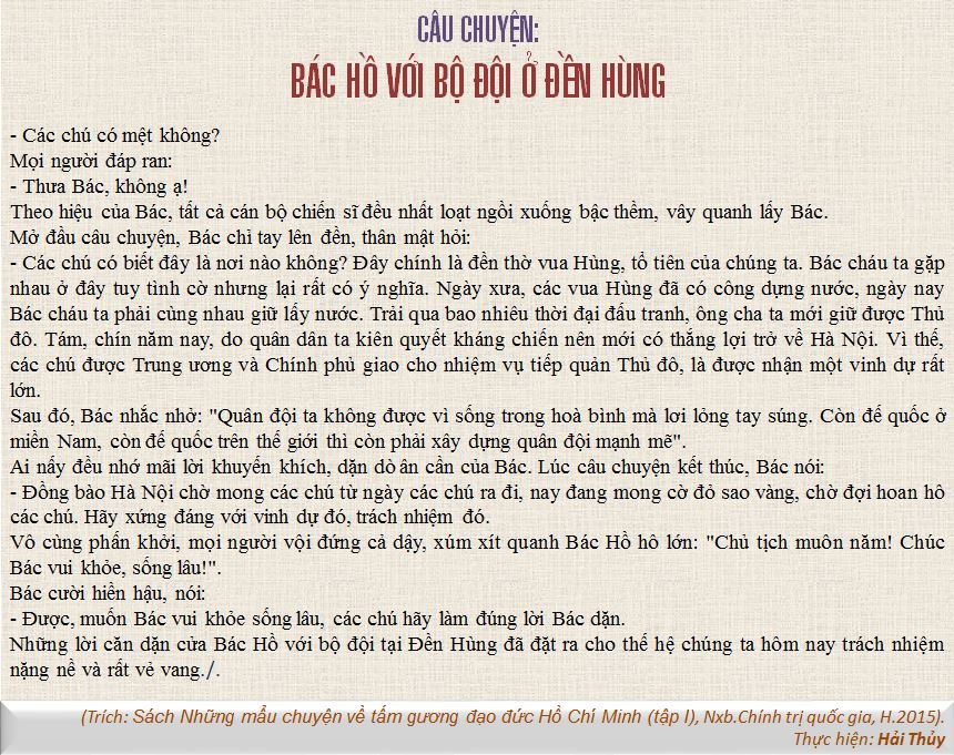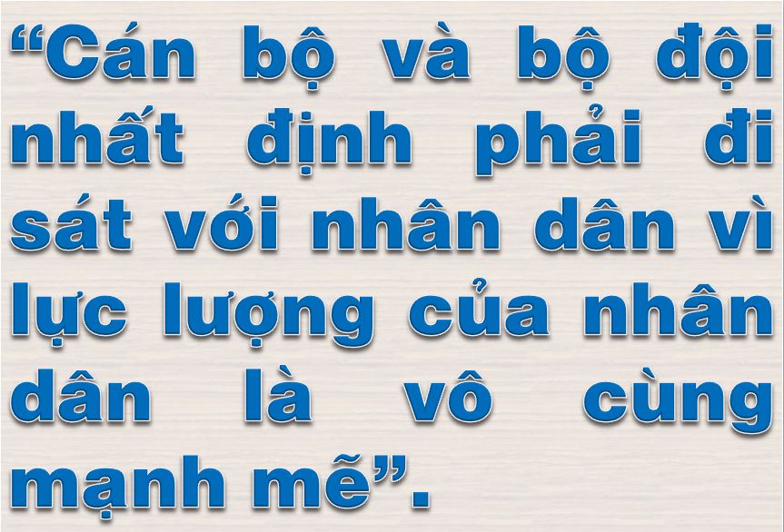 Thực hiện lời căn dặn của Người, lớp lớp cán bộ, chiến sĩ của Quân đội nhân dân Việt Nam luôn xác định đây không chỉ là kỷ luật sắt của một đội quân mà hơn thế, đó là “mệnh lệnh” từ khối óc và con tim của mỗi người. Xác định rõ, chỉ có dựa vào dân, được nhân dân tin yêu như con em ruột thịt thì Quân đội mới giữ vững và phát huy được bản chất, truyền thống tốt đẹp của mình, nâng cao được sức mạnh chiến đấu tổng hợp của Quân đội và hoàn thành tốt mọi nhiệm vụ được giao. Xa rời nhân dân, không gắn bó mật thiết với nhân dân, không liên hệ chặt chẽ với nhân dân, không dựa vào dân thì Quân đội không thể có sức mạnh chiến đấu cao, không thể hoàn thành tốt mọi nhiệm vụ mà Đảng, Nhà nước và nhân dân giao phó.