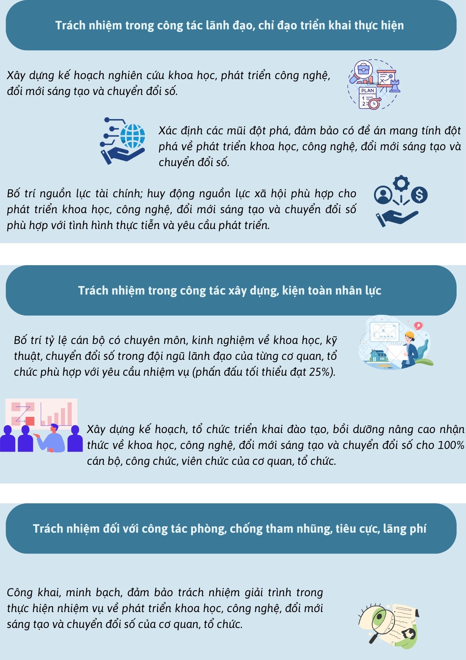 Trách nhiệm của người đứng đầu các cơ quan Nhà nước trong công tác lãnh đạo, chỉ đạo triển khai thực hiện nhiệm vụ về phát triển khoa học, công nghệ, đổi mới sáng tạo và chuyển đổi số của cơ quan, tổ chức