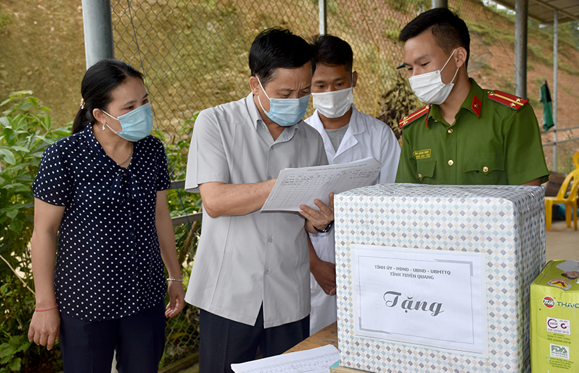 Ngày 13 và 14-8, các đồng chí lãnh đạo tỉnh đã đến thăm, tặng quà các lực lượng đang làm nhiệm vụ tại các chốt kiểm soát dịch Covid -19 huyện Hàm Yên, Lâm Bình.