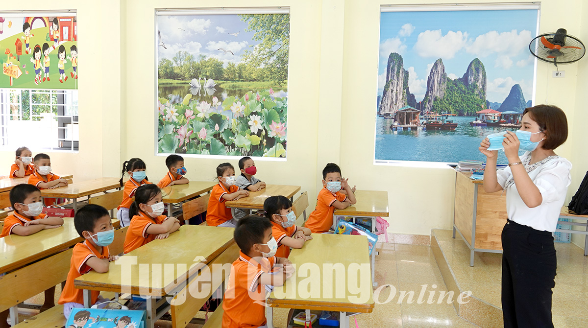 Tuyên Quang là “vùng xanh” nên việc dạy và học từ đầu năm học 2021 - 2022 đến nay vẫn được duy trì tốt, đó là một niềm hạnh phúc bởi rất nhiều tỉnh, thành phố trong cả nước thời gian qua phải tổ chức dạy học online. Tuy nhiên, hiện nay đối với các trường tiểu học, mầm non, việc thực hiện đầy đủ các biện pháp phòng chống dịch trong học sinh, trẻ em (trong đó có việc duy trì đeo khẩu trang thường xuyên) là rất khó khăn. Cùng với đó, trong quá trình học tập ở bán trú tại trường trong lúc ăn, ngủ các em không thể đeo khẩu trang được do vậy phải làm sao để hạn chế nguy cơ lây lan dịch bệnh trong trường học.
