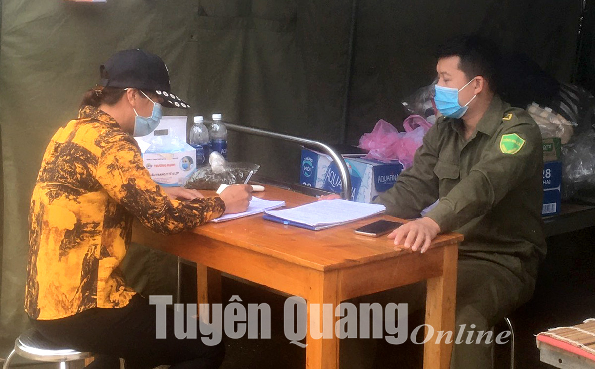 Chốt kiểm soát liên ngành phòng, chống dịch Covid-19 xã Đội Bình (Yên Sơn) nơi giáp ranh với huyện Đoan Hùng, tỉnh Phú Thọ, mỗi ngày có trên 2.000 người và phương tiện qua lại. Những ngày này, lực lượng trực chốt đã nâng cấp độ phòng chống dịch bằng việc tăng cường kiểm soát chặt người dân vào địa bàn. Bác sỹ Nguyễn Mạnh Hoàn, Tổ phó chốt kiểm soát liên ngành phòng, chống dịch Covid-19 tại xã Đội Bình cho biết, chốt kiểm soát đang thực hiện việc kiểm soát người và phương tiện theo văn bản số 3982/UBND-THVX, ngày 16-10 về việc chỉ đạo tạm thời thực hiện một số biện pháp thích ứng an toàn, linh hoạt, kiểm soát hiệu quả dịch Covid-19. Hiện nay, đối với các công dân đến, trở về từ thành phố Việt Trì và Lâm Thao không được vào địa bàn tỉnh, nếu các công dân vẫn có nguyện vọng vào thì yêu cầu phải làm xét nghiệm Realtime RT - PCR và thực hiện cách ly (nếu ở nhà đủ điều kiện thì cách ly tại nhà nếu không phải đi cách ly tập trung); còn đối với công dân ở các địa phương khác của tỉnh Phú Thọ yêu cầu khai báo y tế.