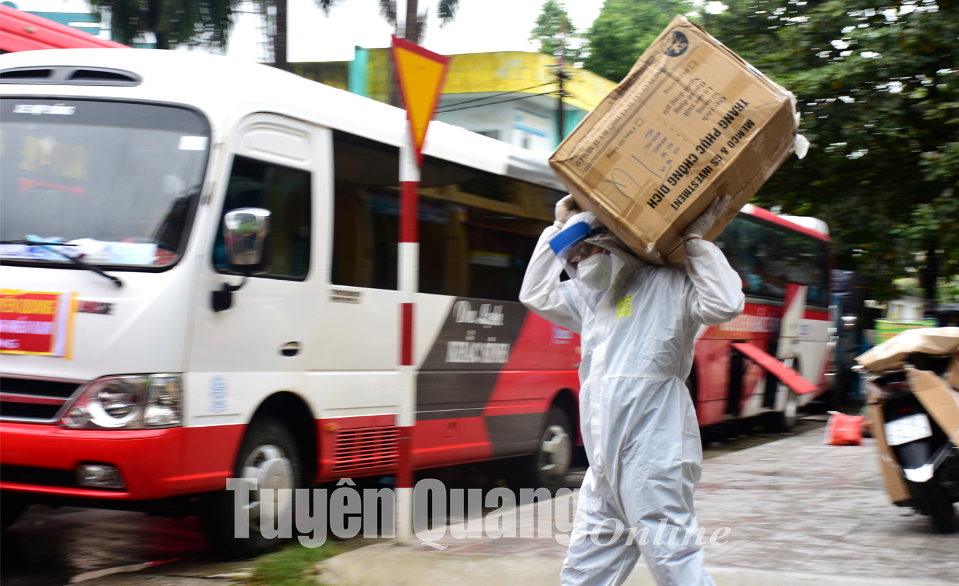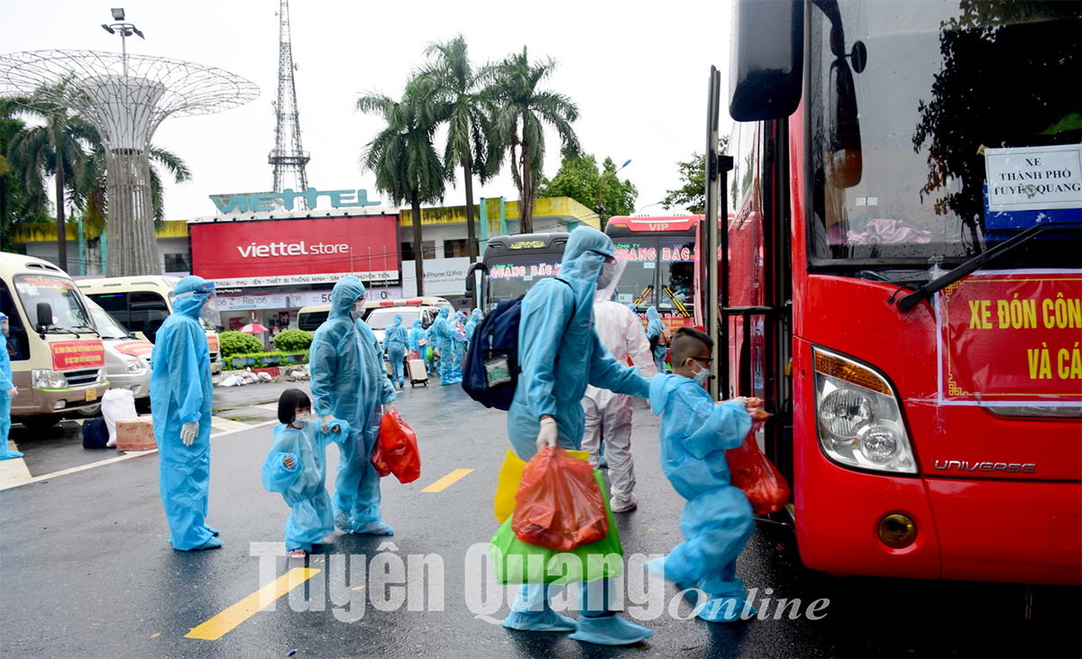 Công dân thành phố Tuyên Quang lên xe trở về địa phương.
