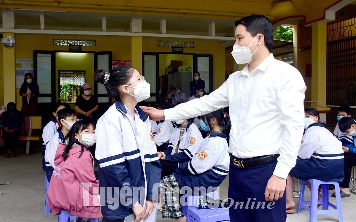 Sáng 18-4, tỉnh Tuyên Quang bắt đầu triển khai tiêm phòng vắc xin Covid-19 cho trẻ từ 5 đến dưới 12 tuổi. Thành phố Tuyên Quang là địa phương đầu tiên triển khai tiêm vắc xin phòng Covid-19 trên địa bàn tỉnh. Ngày mai các địa phương còn lại sẽ triển khai đồng loạt.