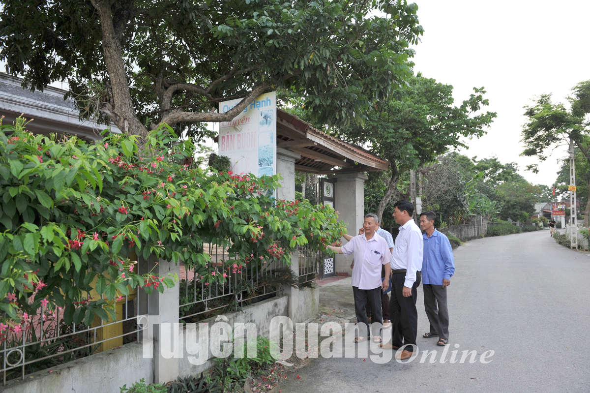 Đồng chí Trần Văn Nhâm (trong cùng, bên trái), Bí thư chi bộ, Trưởng thôn Thác Nóng, xã Sơn Nam (Sơn Dương) kiểm tra việc chỉnh trang nhà cửa của người dân trong thôn.