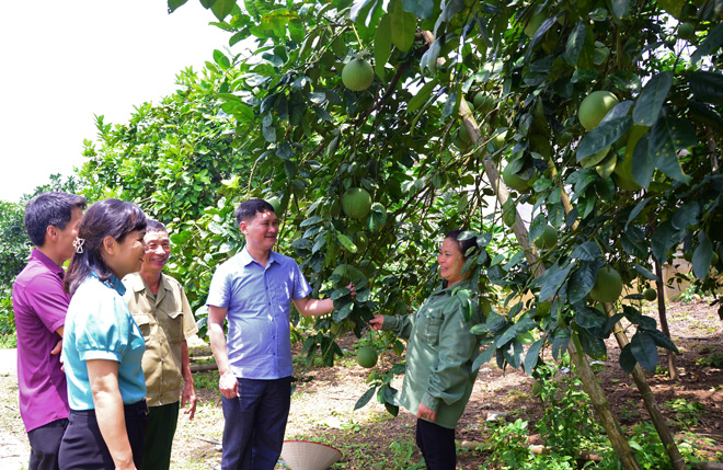 mô hình trồng bưởi của gia đình chị Vũ Thị Vân, tổ 15, phường Đội Cấn.