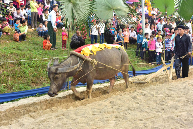 Nghi lễ trâu cày tịch điền tại Lễ hội Lồng tông huyện Chiêm Hóa được tổ chức