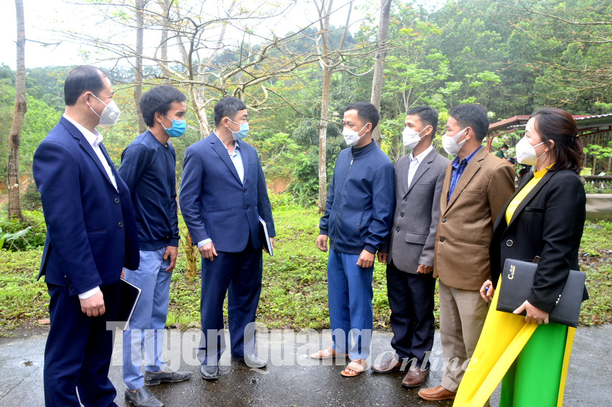 Các đồng chí Thường trực Đảng ủy xã Trung Minh trao đổi với Chi ủy thôn Vàng On về nâng cao chất lượng sinh hoạt chi bộ.