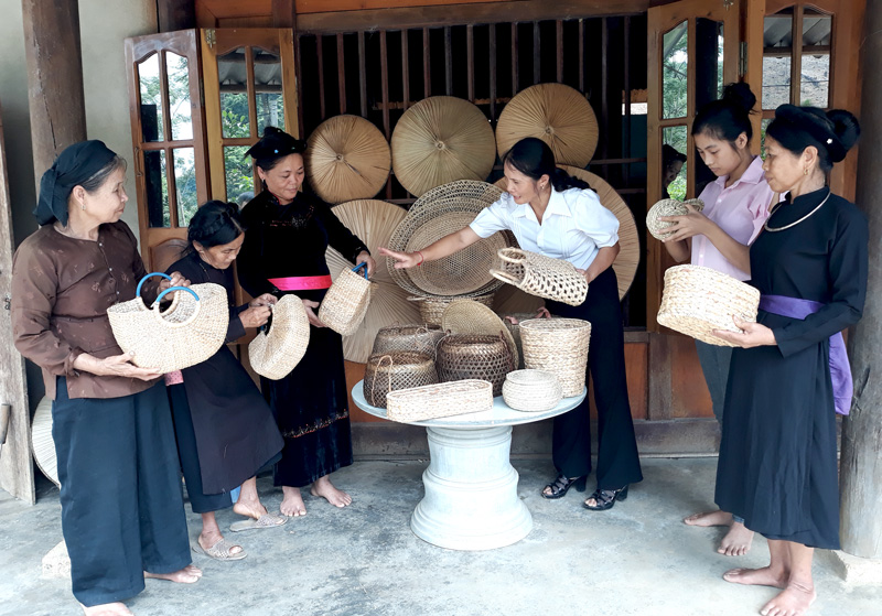 Người dân xã Hùng Mỹ (Chiêm Hóa) sau khi học nghề mây tre đan đã phát triển nghề,