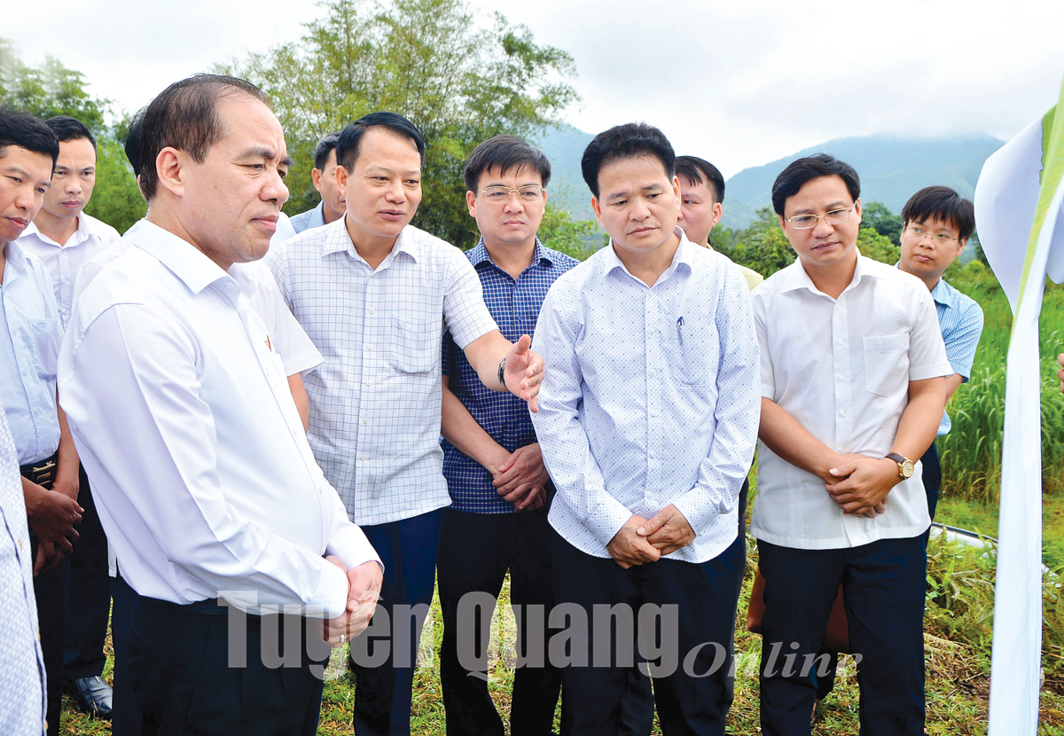 Đồng chí Bí thư Tỉnh ủy Chẩu Văn Lâm cùng các đồng chí lãnh đạo tỉnh khảo sát khu vực xây dựng