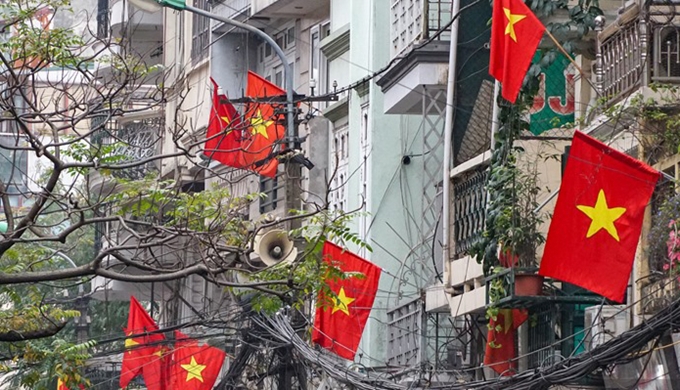Cờ Tổ quốc được treo khắp nơi chào mừng Đại hội XIII của Đảng và 91 năm ngày thành lập Đảng Cộng sản Việt Nam.